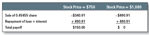 Now compare these payoffs with what you would get if you bought .54545 Amazon share and borrowed the present value of $409.09 from the bank:[1]