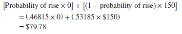 Notice that this is not the true probability that Amazon stock will rise. Since investors dislike risk, they will almost surely require a higher expected return than the risk-free interest rate from Amazon stock. Therefore, the true probability is greater than .46815.