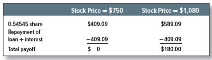 Notice that the payoffs from the levered investment in the stock are identical to the payoffs from the call option. Therefore, the law of one price tells us that both investments must have the same value: