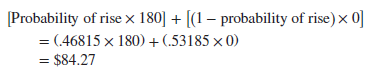 We know that if the stock price rises, the call option will be worth $180; if it falls, the call will be worth nothing. Therefore, if investors are risk-neutral, the expected value of the call option is