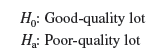 The statistical procedure of acceptance sampling uses the null and alternative hypotheses stated as follows: