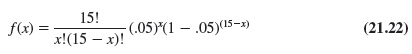 Perhaps we should consider other sampling plans, ones with different sample sizes n or different acceptance criteria c. First consider the case in which the sample size remains n = 15 but the acceptance criterion increases from c = 0 to c = 1. That is, we will now accept the lot if zero or one defective component is found in the sample. For a lot with 5% defective items (p = .05), the binomial probability function in equation (21.21) can be used to compute f(0) = .4633 and f(1) = .3658. Thus, there is a .4633 + .3658 = .8291 probability that the n = 15, c = 1 plan will lead to the acceptance of a lot with 5% defective items.