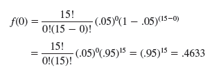 For the KALI acceptance sampling plan, n = 15; thus, for a lot with 5% defective (p = .05), we have