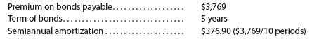 To illustrate, amortization of the preceding premium of $3,769 is computed using the straight-line method as shown below.