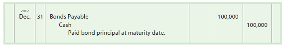 At the maturity date, the payment of the principal of $100,000 is recorded as follows: