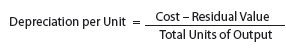 The units-of-output method provides the same amount of depreciation expense for each unit of output of the asset. Depending on the asset, the units of output can be expressed in terms of hours, miles driven, or quantity produced. For example, the unit of output for a truck is normally expressed in miles driven. For manufacturing assets, the units of output are often expressed as units of product. In this case, the units-of-output method may be called the units-of-production method.