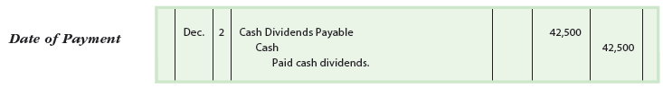 To illustrate, assume that on October 1 Hiber Corporation declares the cash dividends shown below with a date of record of November 10 and a date of payment of December 2.