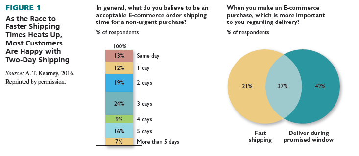 For example, we’ve also seen the race to near immediate shipping times—from next-day to same-day to one-hour shipping. Despite this focus, more than three-quarters of consumers surveyed say they merely expect two days or more for shipping. Consumers say they are more interested in retailers fulfilling their promises—getting products when they were told they would—rather than on getting the product immediately. See Figure 1.