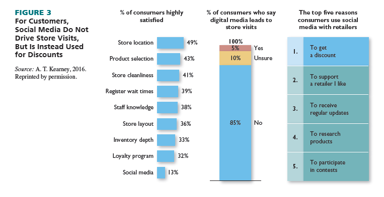 consumers actually expect and what retailers are offering on social media. More than 60 percent of retailers say they still focus on mining social media to generate value. Two-thirds of consumers, on the other hand, say they are not engaging with retailers on social media at all; for those that do, the primary reason is to get a coupon or a discount. See Figure 3.