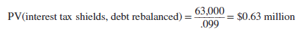 an increase of $1.0 million from NPV in Table 19.1. The increase can be traced to the higher early debt levels and to the assumption that the debt levels and interest tax shields are fixed and safe.[5]