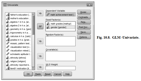- Then also move the second independent variable, gender, to the Fixed Factor(s): box (see Fig.10.8)