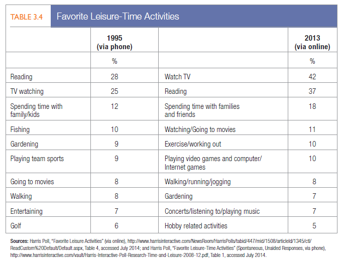Views of ourselves. Some “pleasure seekers” chase fun, change, and escape; others seek “self-realization.” Some adopt more conservative behaviors and ambitions (see Table 3.4 for favorite consumer leisure-time activities and how they have changed, or not, in recent years).