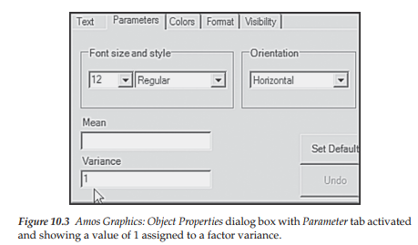 We turn now to the two critically important features of this model. First, in viewing Figure 10.1, you will see a “1” above each of the six factors in the model. This specification indicates that the variance for each of these factors is fixed to 1.00. The question now is: Why are these factor variances specified as fixed parameters in the model? In answering this question, recall from Chapter 5 that in the specification of model parameters one can either estimate a factor loading or estimate the variance of its related factor, but one cannot estimate both; the rationale underlying this caveat is linked to the issue of model identification. In all previous examples thus far in the book, one factor loading in every set of congeneric measures has been fixed to 1.00 for this purpose. However, in MTMM models, interest focuses on the factor loadings and, thus, this alternative approach to model identification is implemented. The process of fixing the factor variance to a value of 1.0 is easily accomplished in Amos Graphics by first right-clicking on the factor, selecting Object Properties, clicking on the Parameter tab, and then entering a “1” in the Variance box as shown in Figure 10.3.