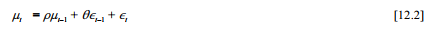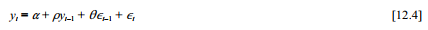 Some sources present an alternative version. In the ARMA(1,1) case, they show yt as a function of the previous y value (yt-1) and the present (e;) and lagged (e;-1) disturbances: