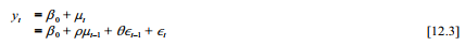 where pis a first-order autoregressive parameter, Pis a first-order moving average parameter, and et represents random, uncorrelated white-noise (normal i.i.d.) errors. arima fits simple models as a special case of [12.1] and [12.2], with a constant (p0) replacing the structural term xt /i. Therefore, a simple ARMA(1,1) model becomes