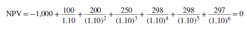 With NPV = 0, the true (internal) rate of return of this cash-flow stream is also 10%.