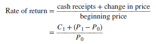 The concept works for any asset. Rate of return equals cash flow plus change in value divided by starting value: