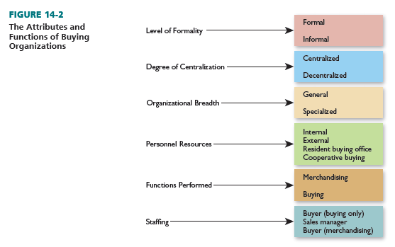 A merchandising plan cannot be properly devised unless the buying organization and its processes are well defined: Who is responsible for decisions? What are their tasks? Do they have sufficient authority? How does merchandising fit with overall operations? Figure 14-2 highlights the range of organizational attributes from which to choose.