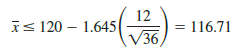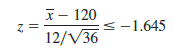We can repeat these calculations for other values of μ less than 120. Do ing so will show a different probability of making a Type II error for each value of μ. For example, supposethe shipment of batteries has a mean useful life of μ = 115 hours. Because we will accept H0 whenever x > 116.71, the z value for μ = 115 is given by