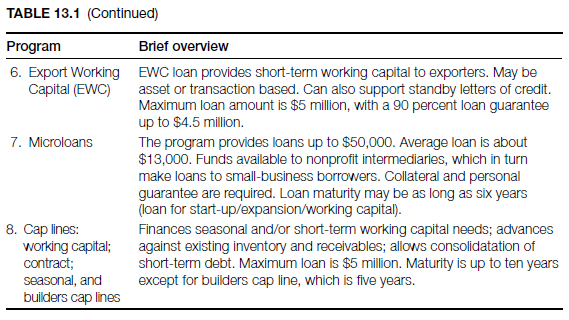 The SBA has several facilities for lending that can be used by export-import businesses for capital needs at different stages of their growth cycle (see Table 13.1).