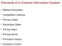 Data of Channel Partners. Channel information system contains complete information about the profiles of channel members such as address, bank account, sales turnover, number of salespersons, infrastructure, facilities offered, financial strength, legal approvals, and taxation numbers, etc. CIS also comprises information about the channel member’s history of orders, payment schedules,and product sales. It also
