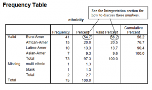 Now we expand our discussion of frequency distributions to include frequency tables, which are constructed in very similar ways for all four types of measurement. A difference is that with nominal data, the order in which the categories are listed is arbitrary. In Fig. 3.3, the frequency table listed protestant, catholic, and then not religious. However, protestant could be put after or between catholic and not religious because the categories are not ordered. In ordinal and approximately normal data, the order cannot vary (e.g., medium always should be between low and