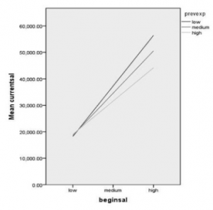In Problem 7.3 we will graph the slopes using the data from the output from Problem 7.2. What do the slopes look like when previous experience (months) is moderating the relationship between beginning salary and current salary? Follow these steps: Open a new and blank SPSS data file by going to File → Data