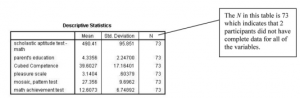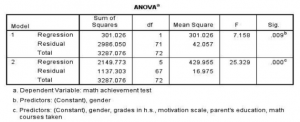 To reiterate, the purpose of multiple regression is to predict an interval (or scale) dependent variable from a combination of several interval/scale and/or dichotomous independent/predictor variables. In the following assignment, we will see if math achievement can be predicted better from a combination of several of our other variables, such as the motivation scale,