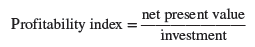 For our three projects the profitability index is calculated as follows:11
