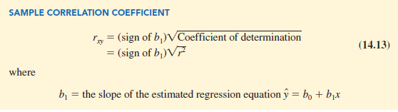 In Section 3.5 we presented the equation for computing the sample correlation coefficient. If a regression analysis has already been performed and the coefficient of determination r2 computed, the sample correlation coefficient can be computed as follows: