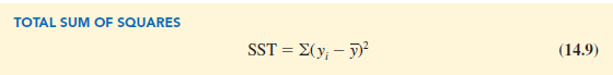 The sum at the bottom of the last column in Table 14.4 is the total sum of squares for Armand’s Pizza Parlors; it is SST = 15,730.