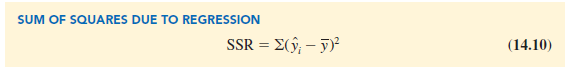 To measure how much the y values on the estimated regression line deviate from y, another sum of squares is computed. This sum of squares, called the sum of squares due to regression, is denoted SSR.