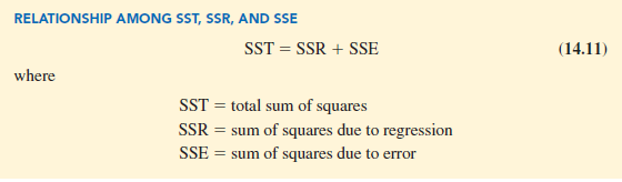 From the preceding discussion, we should expect that SST, SSR, and SSE are related. Indeed, the relationship among these three sums of squares provides one of the most important results in statistics.