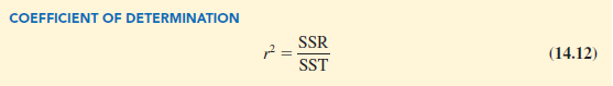 The ratio SSR/SST, which will take values between zero and one, is used to evaluate the goodness of fit for the estimated regression equation. This ratio is called the coefficient of determination and is denoted by r2.