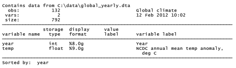 . label variable temp “NCDC annual mean temp anomaly, deg C”