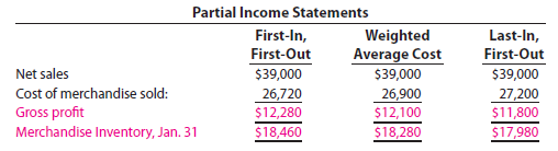 A different cost flow is assumed for the FIFO, LIFO, and weighted average inventory cost flow methods. As a result, the three methods normally yield different amounts for the following:
