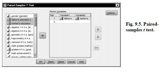 - Move both of the variables, father’s education and mother’s education, to the Paired Variables: box (see Fig. 9.5).