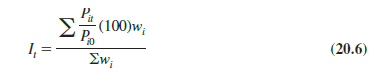 The proper choice of weights in equation (20.6) will enable us to compute a weighted aggregate price index from the price relatives. The proper choice of weights is given by multiplying the base-period price by the quantity of usage.