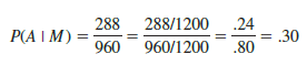 We have shown that P(A I M) = 288/960 = .30. Let us now divide both the numerator and denominator of this fraction by 1200, the total number of officers in the study.