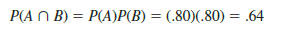As an application of the multiplication law for independent events, consider the situation of a service station manager who knows from past experience that 80% of the customers use a credit card when they purchase gasoline. What is the probability that the next two customers purchasing gasoline will each use a credit card? If we let