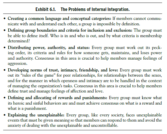In summary, a common language and common conceptual categories are clearly necessary for any kind of consensus to be established and for any communication to occur at all. This common understanding begins with the categories of action, gesture, and speech that are often provided by the person who brought the group together or by the more active members of the group once it is together. Because the members are usually all from the same host culture, a common language is initially available. However, as the group matures, it invests common words with special meanings, and what certain words really mean ultimately becomes one of the deepest layers of that group’s culture. From the outsider’s point of view that common language is then labeled as “jargon” and becomes difficult to decipher. With growing globalism and occupational complexity, more groups will be multicultural, requiring special efforts on the part of leadership to create cultural islands in which those differences can be explored. More will be said about this in Chapters Twelve and Twenty-One.