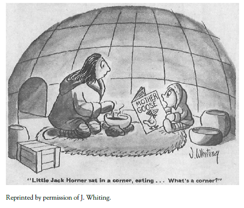 Two children on a see-saw need some verbal or nonverbal means of signaling when to push and when to relax, or how far back to sit if their weight is different, or how fast to move. Members of a founding group coming together to create a new organization need to learn about each other’s semantic space (even if they start with a common basic language, such as English) to determine what they mean by such abstractions as “a good product,” of “high quality,” produced at “low cost,” to get into the “market” “as rapidly as possible.” At a more mundane level, the cartoon of the Eskimo mother makes the point well.