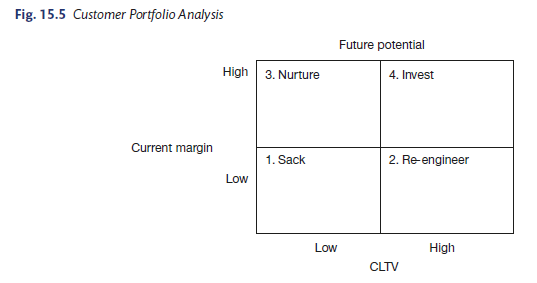 - There are customers who are presently profitable but offer apparently little future potential (Cell 3). It may be possible to nurture these relationships in ways that improve LTV potential.