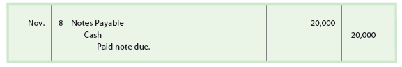 The entry when Cary Company pays the discounted note on November 8 is as follows: