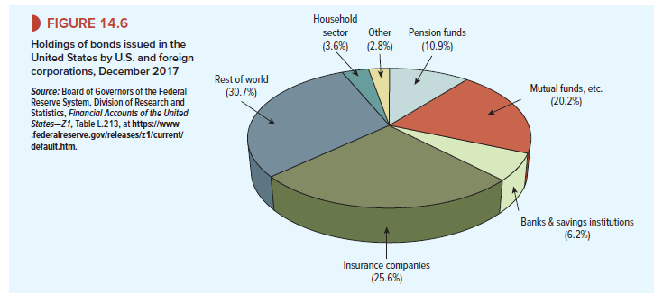 We have seen that financial intermediaries own the majority of corporate equity. Figure 14.6 shows that this is also true of the company’s bonds. In this case, it is the insurance companies that own the largest stake.15