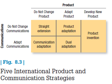 PRODUCT ADAPTATION STRATEGIES Warren Keegan has distinguished five product and communications adaptation strategies (see Figure 8.3).69 We review the product strategies here and the communication strategies in the next section.