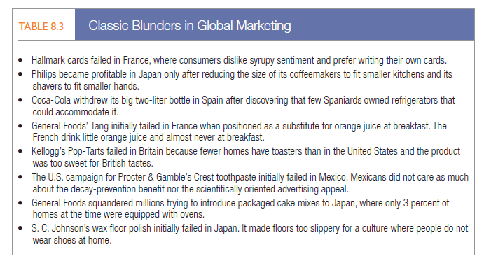 Table 8.3 lists some other famous marketing mistakes in this area.