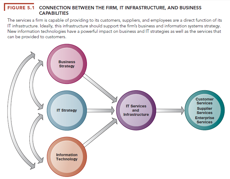 An IT infrastructure consists of a set of physical devices and software applications that are required to operate the entire enterprise. But IT infrastructure also includes a set of firmwide services budgeted by management and composed of both human and technical capabilities. These services include the following: