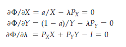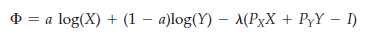 U(X, Y) = a log(X) + (1 – a) log(Y)