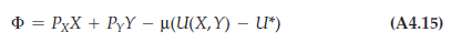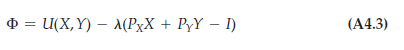 - Differentiating the Lagrangian If we choose values of X and Y that satisfy the budget constraint, then the second term in equation (A4.3) will be zero. Maximizing will therefore be equivalent to maximizing U(X, Y). By differentiating $ with respect to X, Y, and X and then equating the derivatives to zero, we can obtain the necessary conditions for a maximum.[1] The resulting equations are